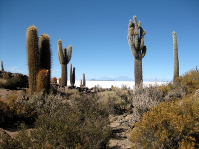 Mitten im Salz die Insel Incahuasa oder (für die Touristen) Isla del pescador, Fischerinsel, weil sie angeblich wie ein Fisch