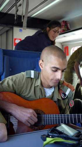 06. Januar 2012 Zurück nach Tel Aviv mit dem Zug (von Beersheba): Es war Freitag; der letzte Zug vor dem Shabath fuhr um halb zwölf. Ich nahm einen frühreren und reist unter jungen Leuten, Soldatinnen und Soldaten, die in den Wochenendurlaub fuhren. "Shalom Shabath". Kurz vor Tel Aviv packte einer von ihnen die Gitarre aus und spielte Beatles-Songs: Yesterday... Eine entspannte, freundliche Atmosphäre. Als der Musikant ausgestiegen war, fragte mich eine der jungen Frauen, ob mir Israel gefalle. Natürlich habe ich die Frage mit "ja" beantowrtet. Sie meinte, dass das Bild des Landes im Ausland schlecht sei. Der Druck der internationalen 'öffentlichen' Meinung. In der Frage klang Sorge mit. |