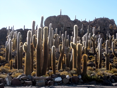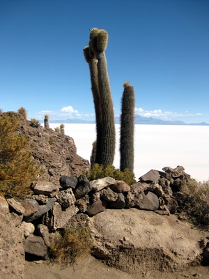 Mitten im Salz die Insel Incahuasa oder (für die Touristen) Isla del pescador, Fischerinsel, weil sie angeblich wie ein Fisch