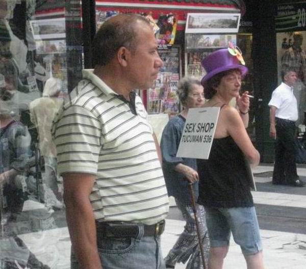 Was ist ein Flaneur? Einer, der nichts zu tun hat, der ziellos herumläuft, schnuppert, schaut, hört, manches sieht, nicht alles versteht. Flanieren: Am zweiten Tag bin ich Von der Calle Florida zur Plaza San Martín gelaufen, dann nach San Telmo: Calle Peru, ein Imbiss im 'Café London City', ein Wandbild, eine Demo, die Markthalle von San Telmo und am Ende noch eine wunderbare Dichterlesung in irgend einer Kneipe: Rafael Otiga, gelesen von einer rauchigen Frauenstimme, danach Gespräch mit dem Dichter. Da habe ich endgültig nichts mehr verstanden und bin gegangen. Ich war müde und die sprechen hier ein (für das Greenhorn) schreckliches Spanisch. |