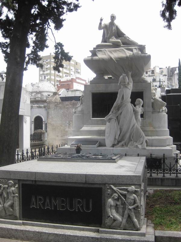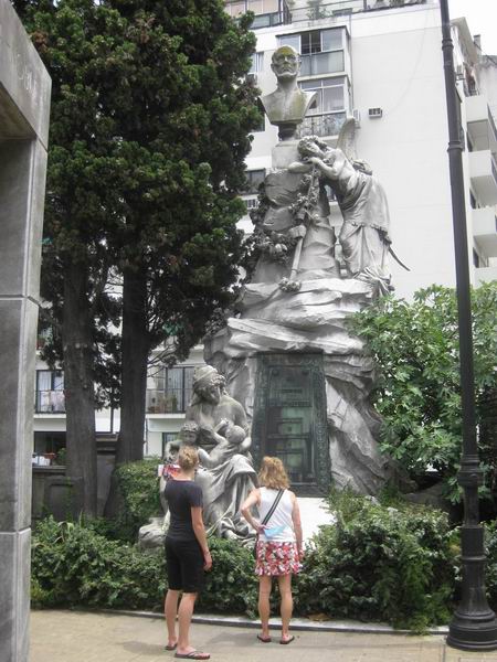 Es gibt viele Arten sich durch das Leben zu schlagen, wenn einer oder eine nicht zu den mit Reichtum Gesegneten gehört: Man verkauft auf der Straße irgend etwas mehr oder weniger Sinnvolles oder auch sich selbst, man singt, macht Musik, verteilt Zettelchen... Man kann auch Hunde ausführen; Frauchen pflegt sich indessen die Zehennägel... Dem alten Französischlehrer springt jedesmal das Herz im Leib, wenn ihm die Tricolore begegnet. Hier an der französichen Botschaft (genau hinsehen!). Mitten in der oft gesichtslosen Stadtarchitektur dann einmal eine Jugendstilperle. Auf dem Weg zum Recoleto-Friedhof vorbei an der schönen Kirche... und dann die Gräber der Reichen und Mächtigen, beginnend mit dem von Evita Peron (oder ist es Eva, bitte korrigieren!). Gewaltig, was die Leute sich einfallen lassen, um sich im Gedächtnis zu halten. Und das strebt nach oben: von der das Kind säugenden Mutter bis zum himmelsnahen Feldherrn oder die marmorne Dame, die hinter sich die Türe schließt (oder öffent sie sich die Pforte. Jedenfalls hat sie die Hand an der Klinke. Am Ende gab es noch Kunst: eine riesige Blume im Park und dann das Museum der Schönen Küste. Im unteren Geschoss fiel mir der Goya ins Auge. Im ersten Stock gab es lateinamerikanische Kunst der letzten fünfzig Jahre. Hat mich beeindruckt..., kann's aber nicht vorführen. |