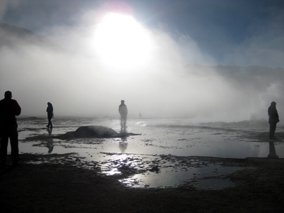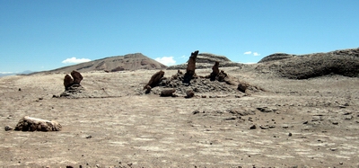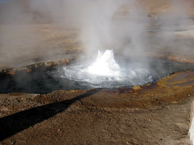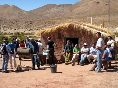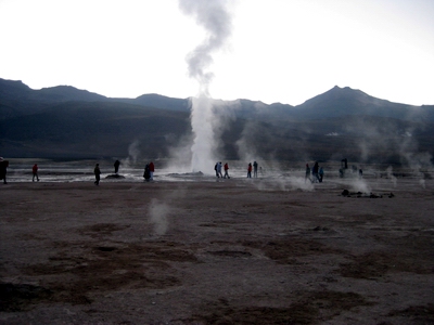 erwartet und auf einem dritten Stock in der Schlafkammer untergebracht. Nach einem ersten Ruhetag Aufstehen um vier Uhr morgens um die Geysire von Tatio zu besuchen. Aufstieg auf 4300 m und Abstieg auf -8°. Mag sein, dass sie in Island eindrucksvoller sind. Weil ich noch nie in Island war, waren sie eindrucksvoll. Ist aber auch eine von diesen Tourismusautomaten. Da werden morgens Hunderte ausgeschüttet und wieder abgefahren. Auf der Rückfahrt Same procedure in einem kleinen Andendorf. Dort erwarteten uns Lama am Spieß und Lamaempanadas. Schmeckt gut. Danach wieder aus der kargen Andensteppe (Puna) in die absolute Wüste. Am Abend noch in das kleine Museum hier. Ein Kleinod über die Entstehung einer bescheidenen Kultur. Die Inkas haben sie sich einverleibt und dann die Spanier. |