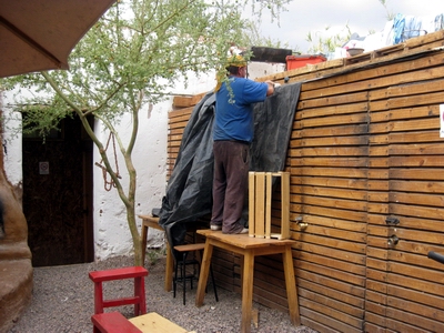 Ziegen und Schafen und die erste von fünf Furten, ein Backofen. Und weil Regen drohte, schnell eine Dachabdichtung in