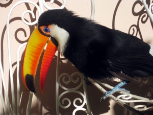 Zu dieser Stadt passt dieser emblematische Vogel, der im Patio des Hospedaje 'Resedencial Bólivar' mit einem Gesellen (einer