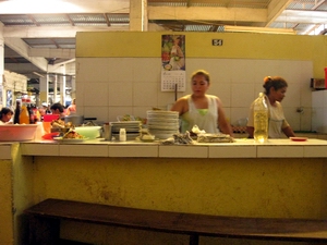 ![]() Seit der ersten guten Erfahrung in La Paz speise ich, wenn es nur geht, auf den Märkten. Das Essen ist gut, es kostet nicht viel. Die Atmosphäre ist freundlich, verschlägt dem Hungrigen durchaus nicht den Appetit. Ganz im Gegenteil. |
